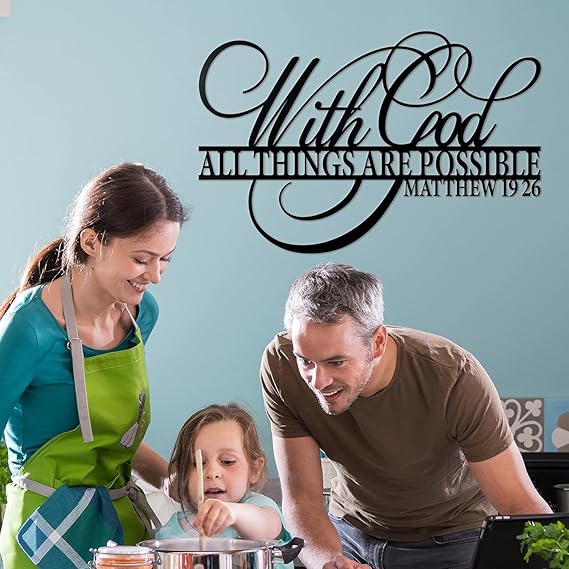 BLIND SHOP With God All Things Are Possible Sign - Metal Wall Decor, Christian Bible Verse Inspirational Scripture Wall Art, Religious Black Bible Verses, Faith-Based Home Decoration (40x26x1.5 CM)
